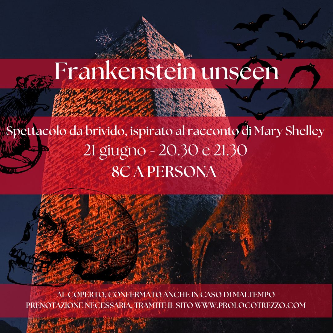 Arriva al Castello di Trezzo uno spettacolo teatrale della compagnia “FarsaTeatro”. Andremo a rivivere la storia di Frankenstein e della sua creatura . Un viaggio tra paura, mistero e oscuri segreti per rivivere il racconto ispirato al capolavoro di Mary Shelley.